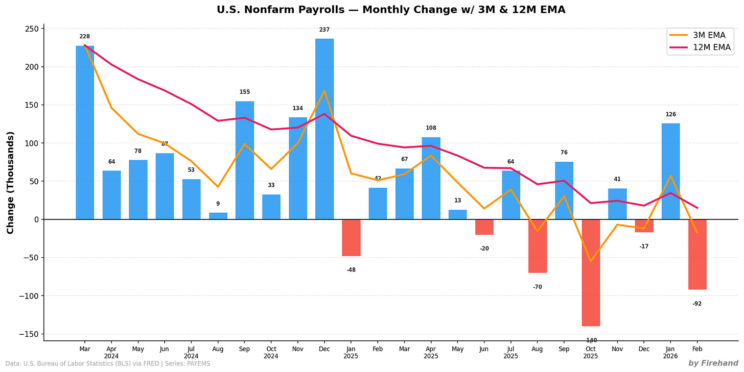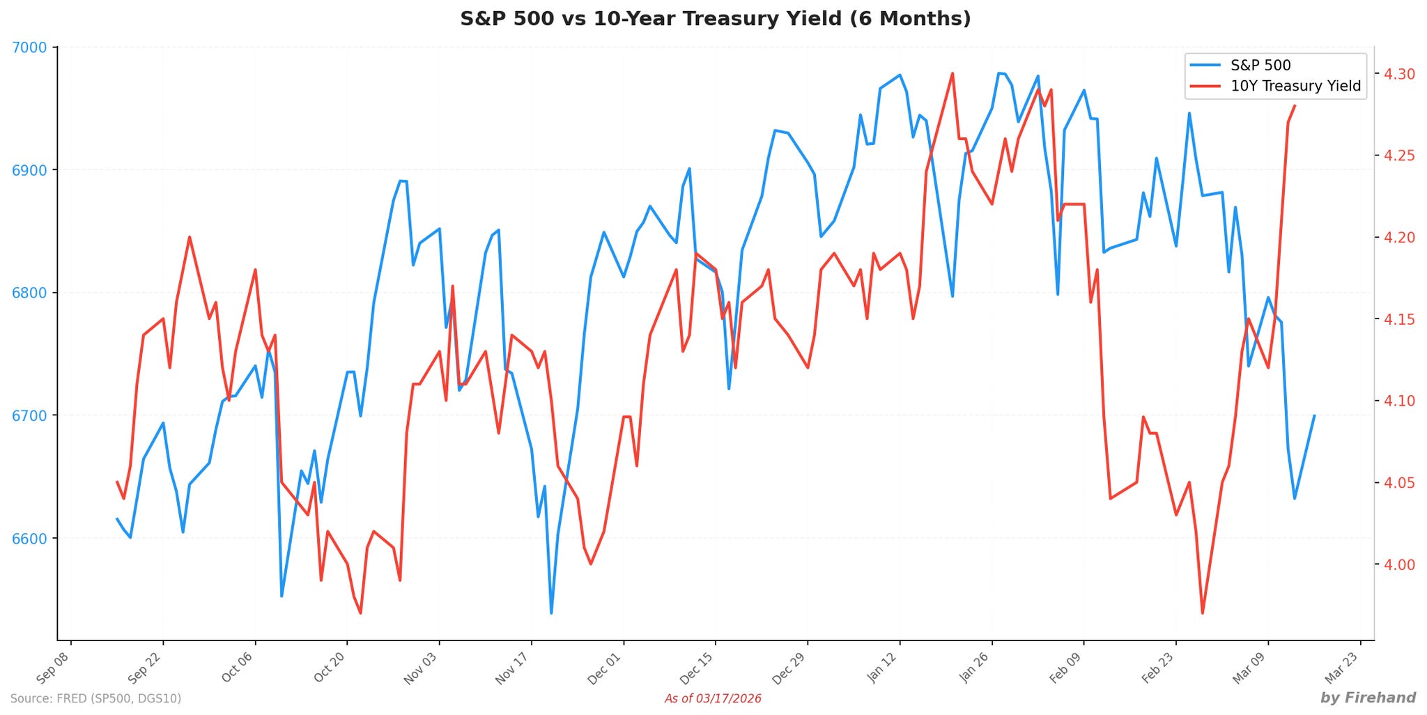 更糟糕的是,转向的通胀和持续恶化的非农数据将市场推向了滞涨的预期。随着战争的持续,标普500缓慢下跌与10年期长端美债收益率的飙升验证市场已经开始price in滞涨的预期。