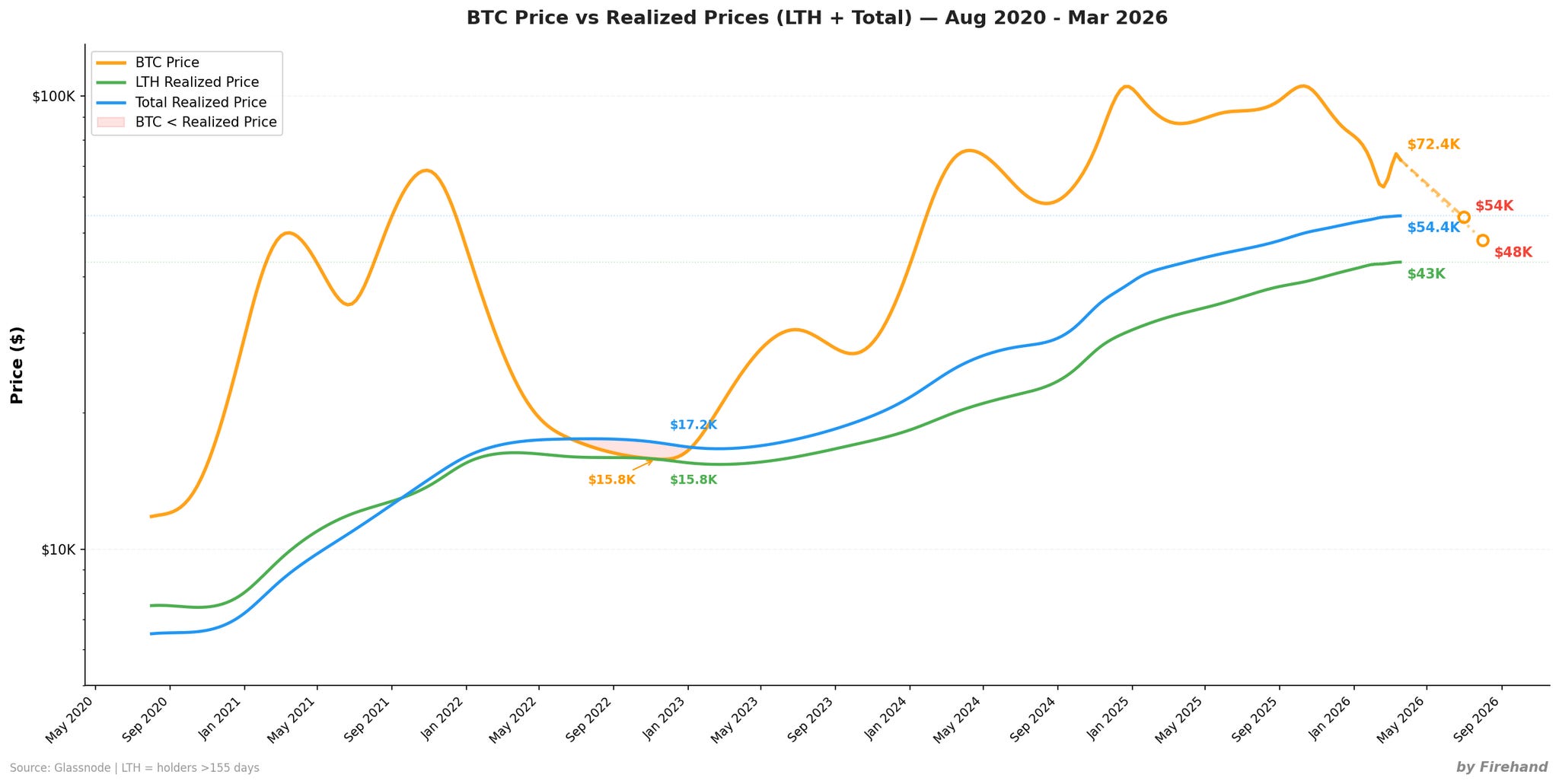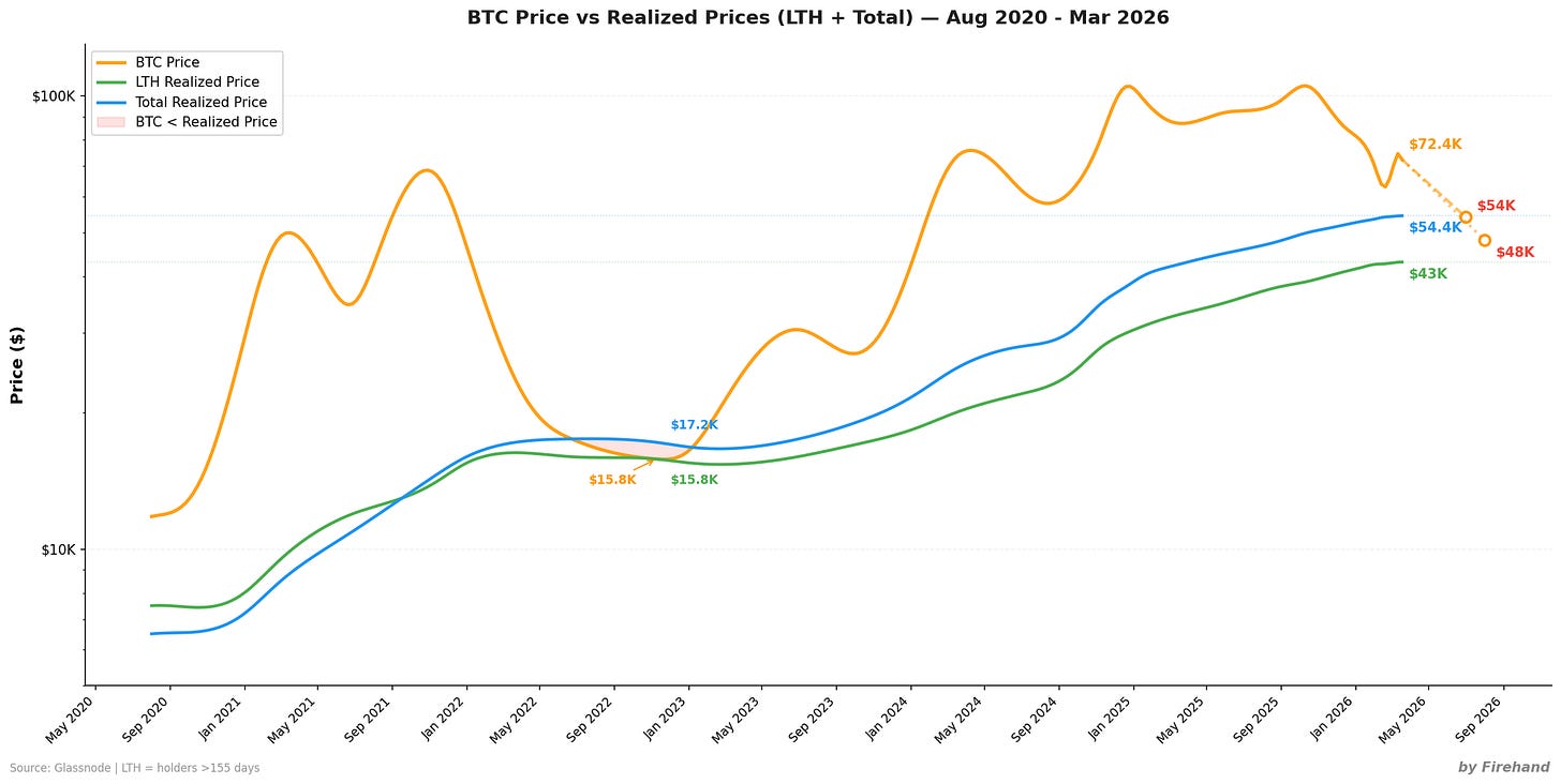 TL;DR - 宏观滞胀预期+HTF结构break+链上数据+黄金周期对比,指向BTC 48-62K底部区间,预计Q3-Q4形成。短期LTF反弹目标77-79K,跌破70K反弹结束。